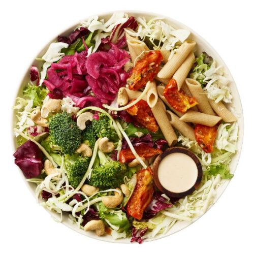 Vælg bund, 4 ingredienser, 1 topping og dressing. Mulighed for tilkøb af kød, brød og ekstra ingredienser.