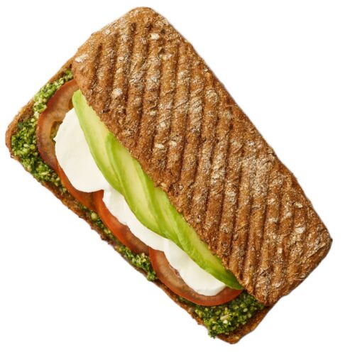 Pesto, mozzarella, avokado & tomat